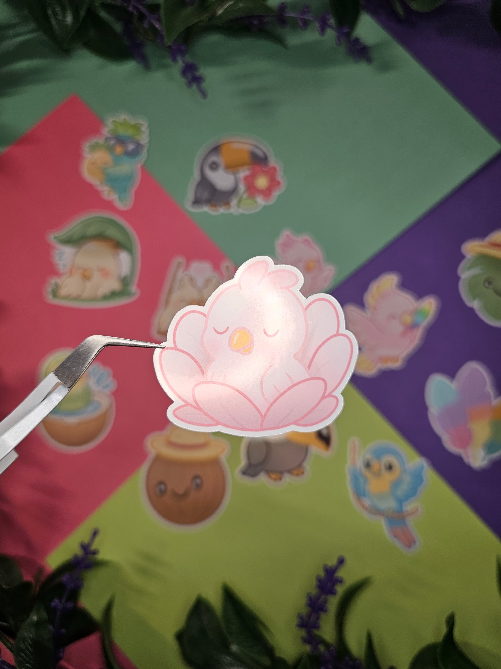 These adorable tropical birds flutter through rainbow colors, bathe in coconut shells, and spread cheer with every sticker. Perfect for anyone who wants to hold onto that summer feeling all year round! 💖